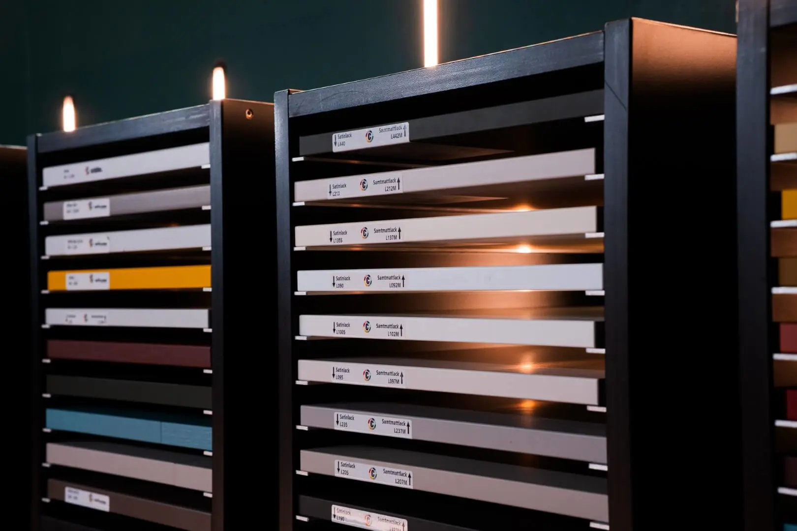 Dans le NOVOTECH, les façades de cuisine sont présentées dans une gamme variée, allant du mat classique au laqué mat, avec des finitions anti-trace pour une facilité d’entretien. Les clients peuvent choisir parmi une vingtaine de coloris standards ou opter pour des teintes sur mesure, afin de créer un rendu unique. Pour vos caissons interieur ou exterieur de meuble, une large gamme de choix est proposée également, fini les intérieurs de caisson blanc ! Cette diversité permet de s’adapter à tous les styles, qu’il s’agisse d’un design moderne, minimaliste ou plus chaleureux.